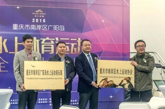 現場舉行授牌儀式,重慶市南岸區體育局領導李真平副局長、朱健副局長為重慶市南岸區廣陽島水上運動俱樂部和重慶市南岸區水上運動協會授牌。
