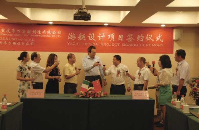 公司與意大利著名游艇設計企業-韋爾梅設計公司正式簽約,雙方合作研發以意大利設計師名字命名的系列豪華游艇精品。韋爾梅先生服務過多家知名游艇設計公司,并贏得過數個游艇設計大獎,在意大利具有極大影響力。